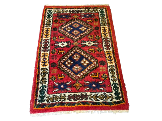 Edler handgeknüpfter Perser Teppich Orientteppich Heris 93x62cm