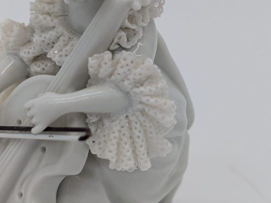 Aelteste Volkstedt Porzellanfigur Dame mit Cello Spitzenporzellan Figur