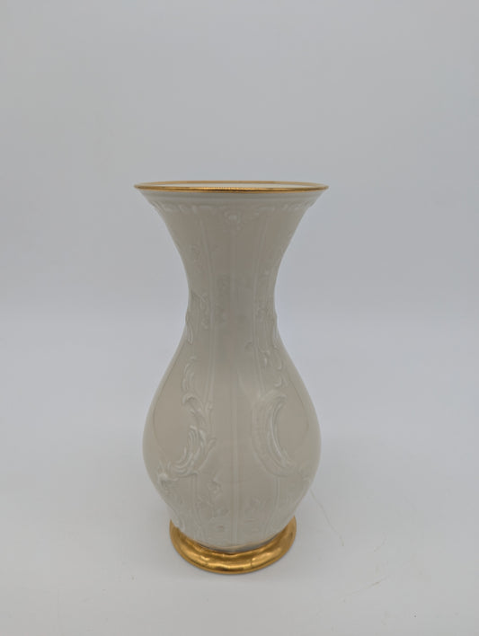Rosenthal Porzellan Vase Reliefdekor Weiß mit Goldrand und Goldfuß