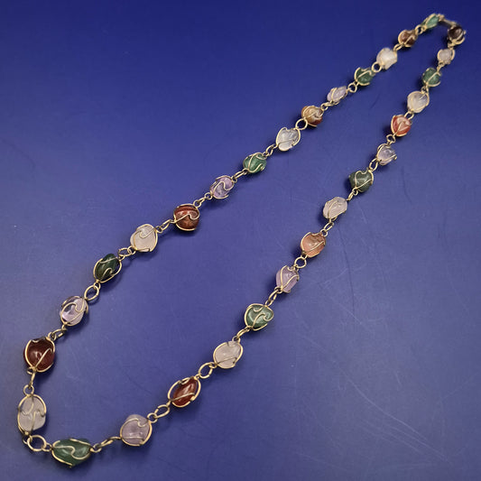 Bunte Edelstein Halskette – Handgefasste Natursteine in Goldoptik
