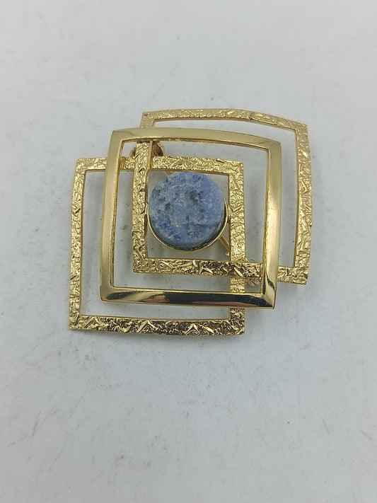 Geometrische Schmuckbrosche goldfarben mit Naturstein und modernem Quadrat Design