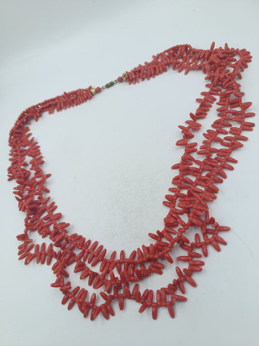 Mehrreihige Korallenkette rot naturbelassen mit Karabinerverschluss