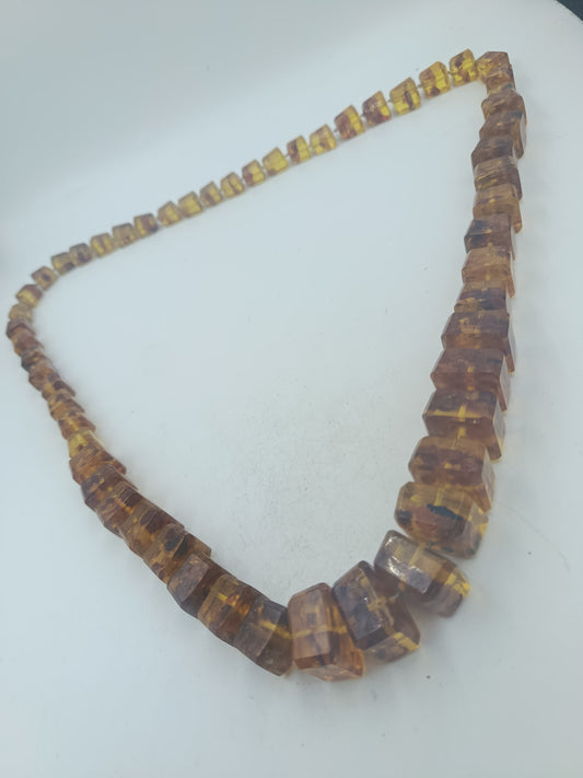 Bernstein Halskette mit warmen Naturfarben und markanter Würfelform