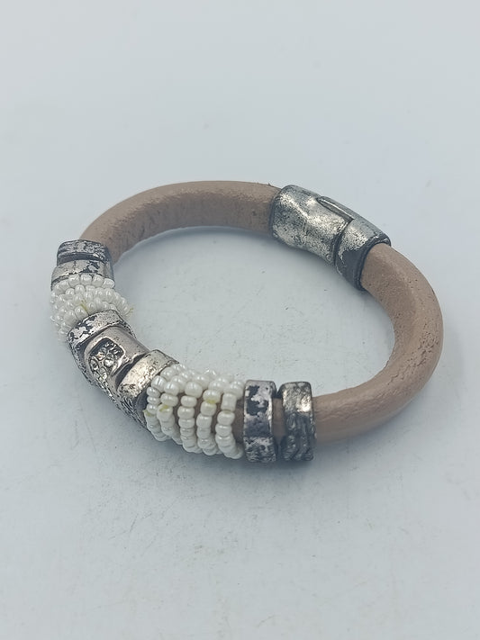 Handgefertigtes Armband aus Leder mit Metall und Glasperlen