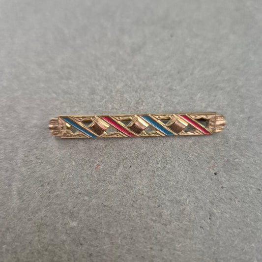 Schmale Vintage-Brosche mit Emaille – Trikolore-Muster in Rot & Blau