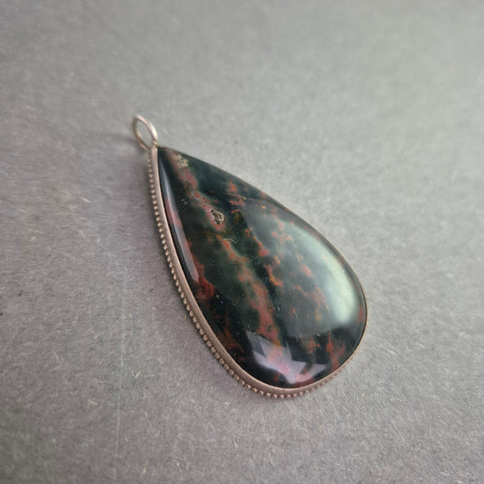 Tropfenförmiger Anhänger mit Blutjaspis – Silberfassung, Naturstein