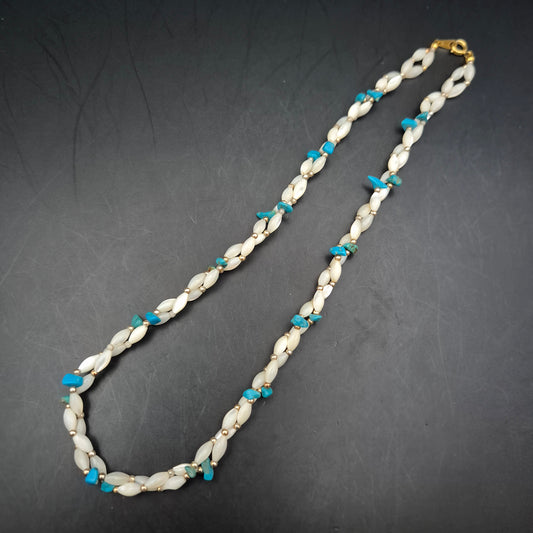 Sommerliche Damen Kette – Perlen, Türkis-Splitter & Gold-Akzente