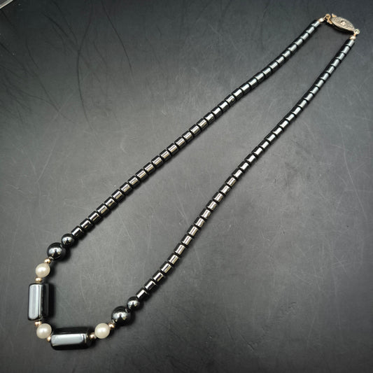 Elegante Damen Kette – Glänzender Hämatit kombiniert mit Perlen