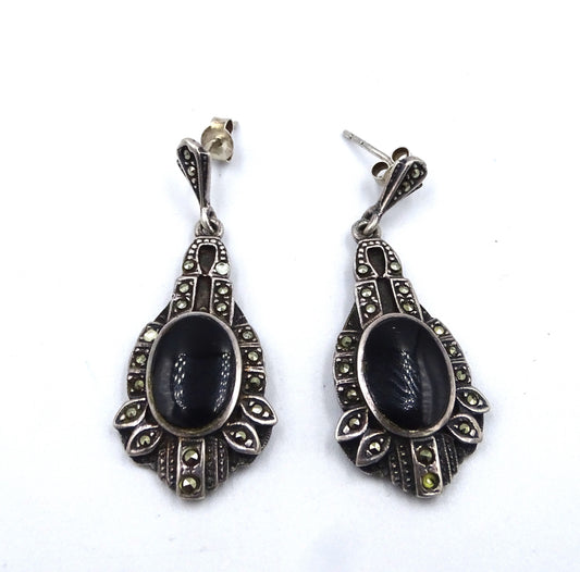 Exquisite Silber ART DECO Ohrringe mit Onyx