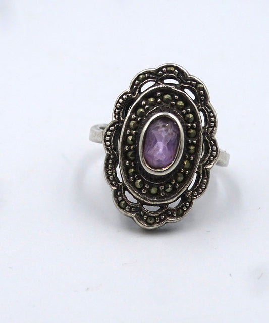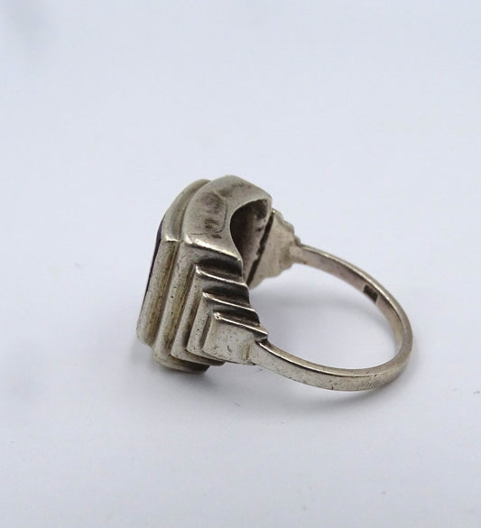 Antiker Jugendstil Damenring aus Silber 925 mit Amethyst, Größe 53