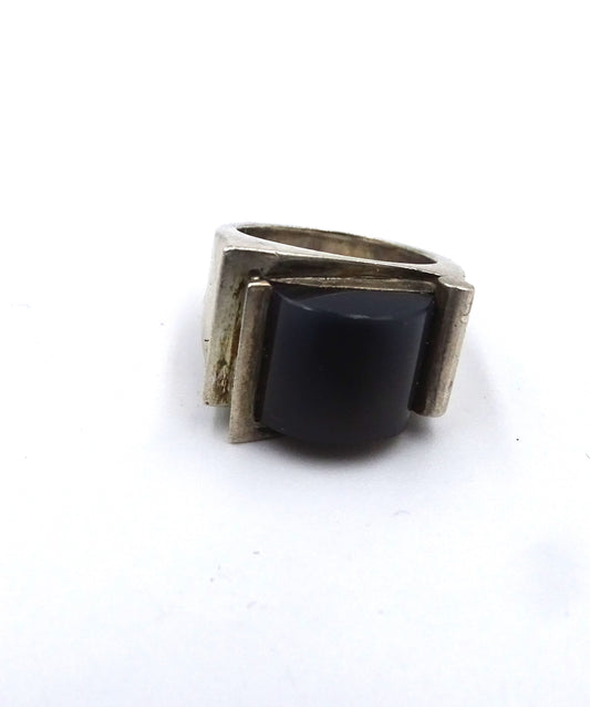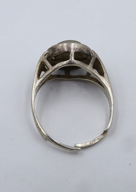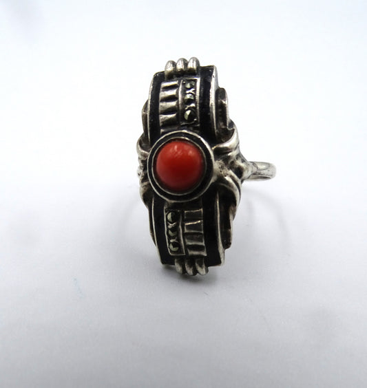 Art déco-Ring mit Koralle – 835 Silber, Größe 53