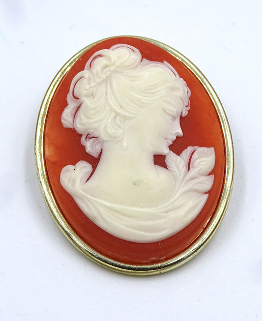 Elegante Goldfarbene Muschel-Kamee-Brosche