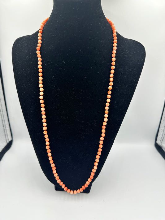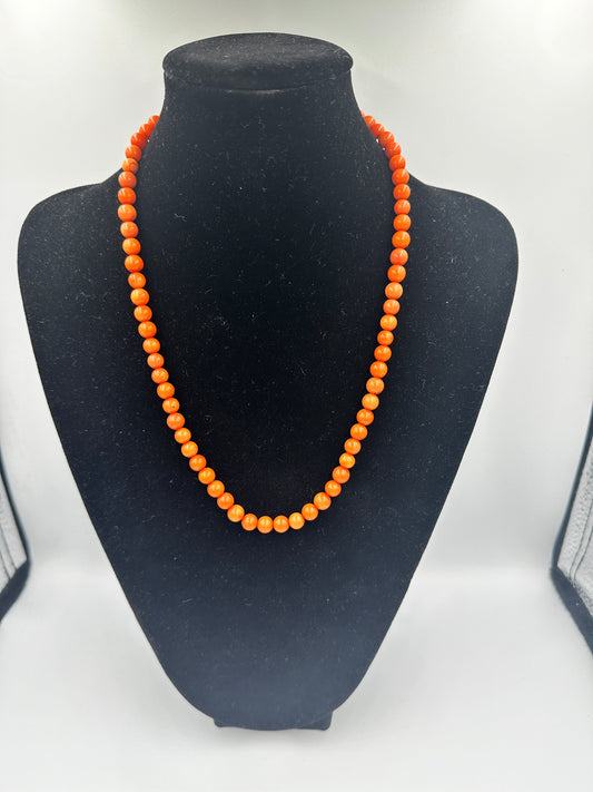 Schlichte Korallenperlenkette in Korallenrot goldfarbenen Verschluss