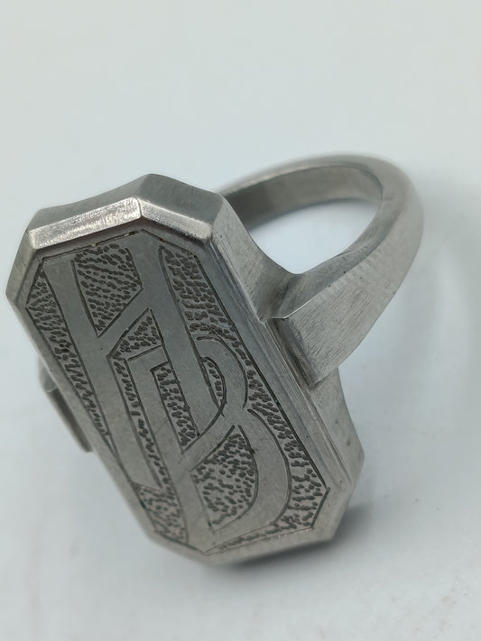 Moderner Edelstahlring mit goldfarbenen Elementen