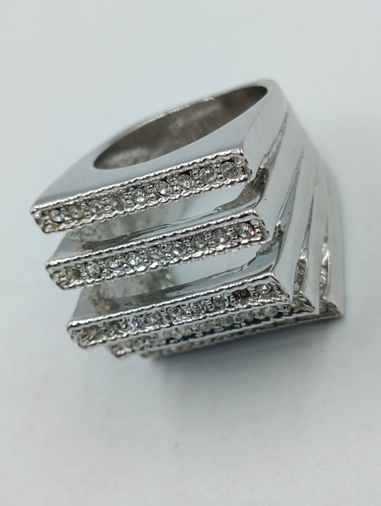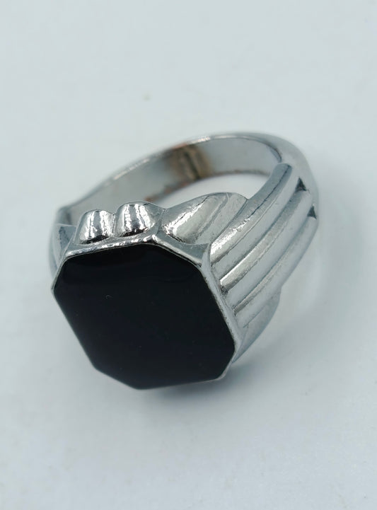 Silberfarbener Ring mit großem dunkelblauem Stein