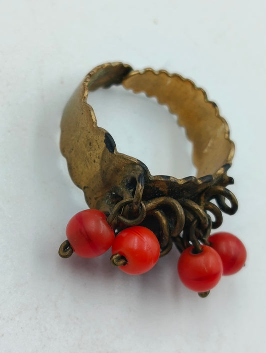 Verstellbarer Vintage-Ring mit roten Perlenanhängern
