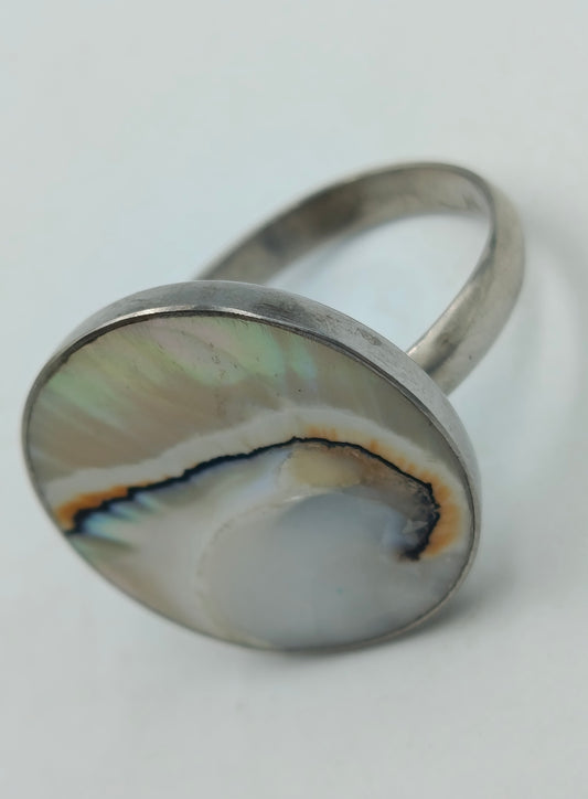 Silberfarbener Ring mit Muschelkern-Einsatz