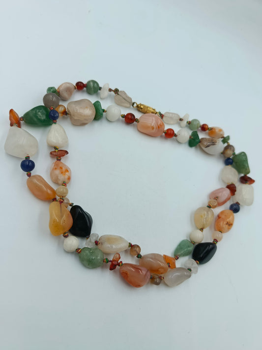 Halskette aus Edelstein-Splittern in warmen Tönen