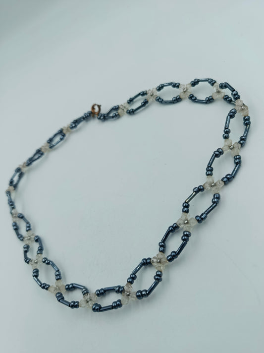 Glasperlenkette in Schwarz-Silber-Optik mit Kristallperlen