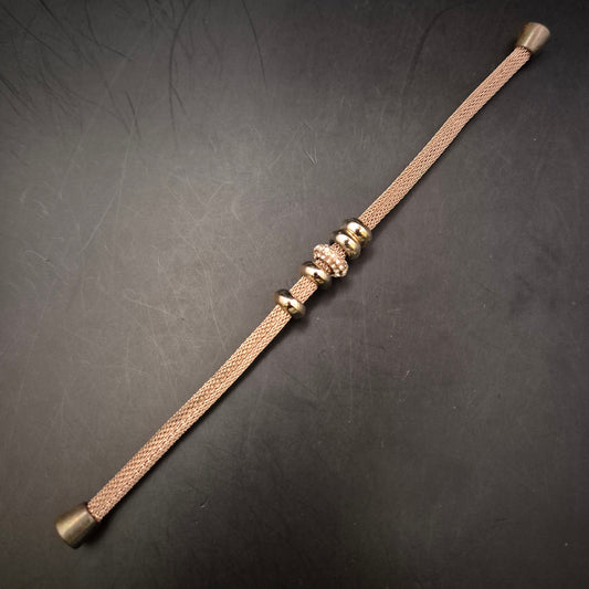 Glamouröses Mesh-Armband – Roségold-Look mit Funkelndem Strass-Bead