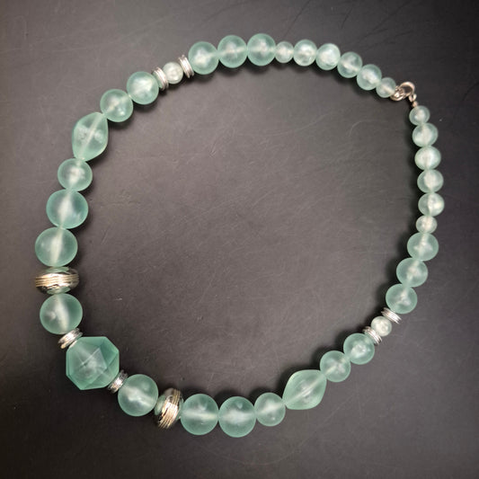 Vintage Glaskette Mintgrün mit Facettenperle & Metallakzenten