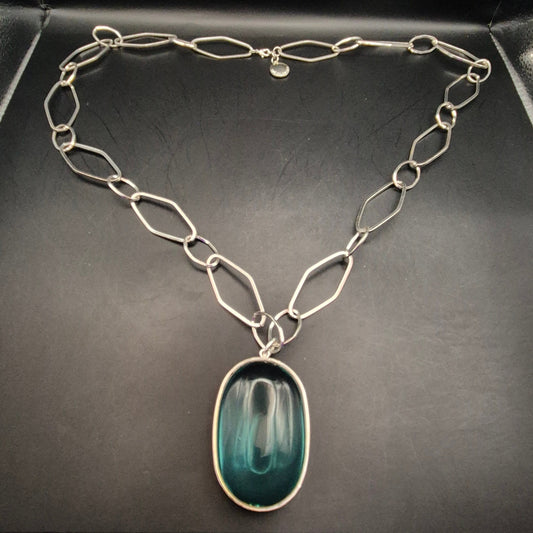 Elegante 925 Sterling Silberkette mit blaugrünem Glasanhänger