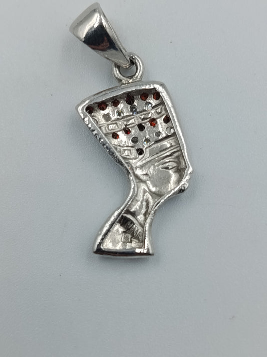 Silberfarbener Anhänger „Nofretete“ mit roten und klaren Steinen