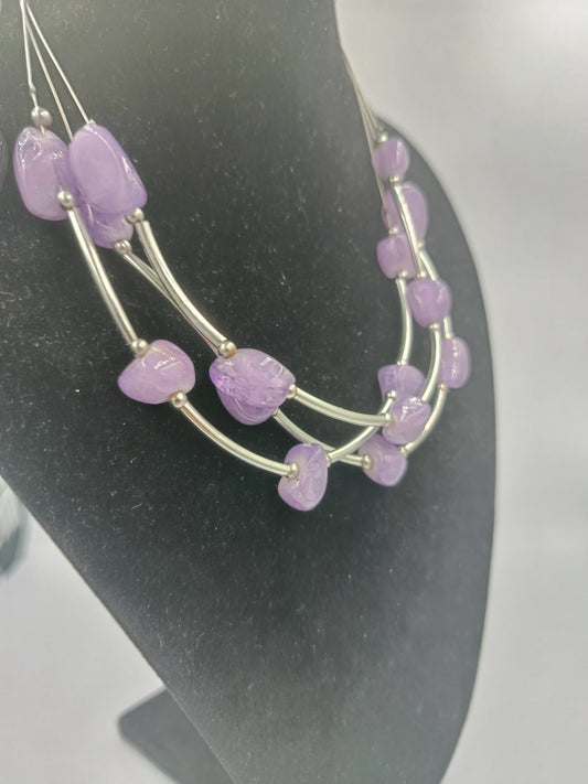 Moderne Halskette mit Lila Steinen und Metallbögen