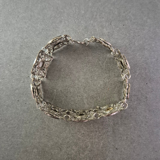 Vintage Armband in Schwarz-Silber mit roten Akzenten – Funkelnd & Elegant
