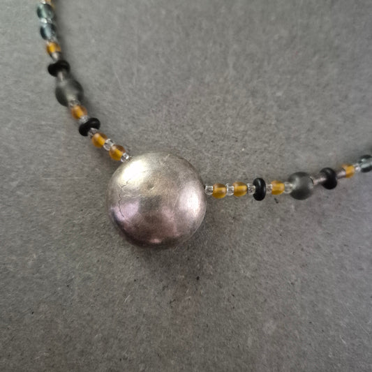 Künstlerische Glasperlen Halskette mit Metallanhänger – Farbspiel & Struktur