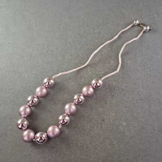 Moderne Perlen Halskette in Rosa-Metallic – Glänzend & Statementstark
