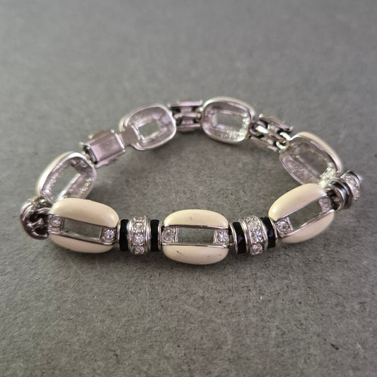 Elegantes Armband mit cremefarbenen Gliedern und Strass – Vintage Glamour