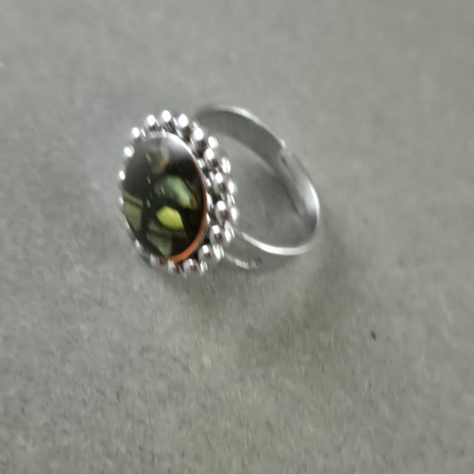 Verstellbarer Silberring mit ovalem Perlmutt-Stein