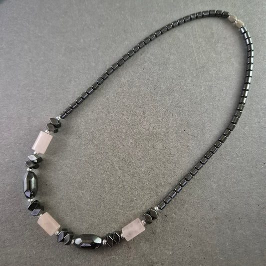 Hämatit Kette mit Rosenquarz – Edelsteinmix in harmonischem Design