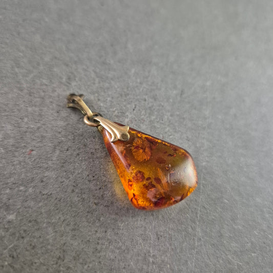 Tropfenförmiger Bernstein-Anhänger – Warme Naturtöne im Vintage-Stil