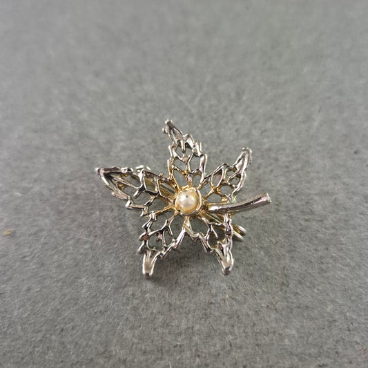 Vintage Brosche Ahornblatt mit Perle – Filigranes Design in Silberoptik