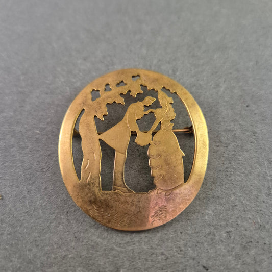 Romantische Vintage-Brosche mit Scherenschnitt-Motiv – Goldfarbener Look