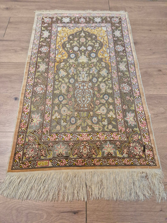Seidenteppich Orientteppich Handgeknüpfter Teppich Kayseri Mihrab 160x91cm