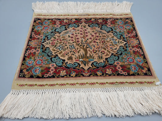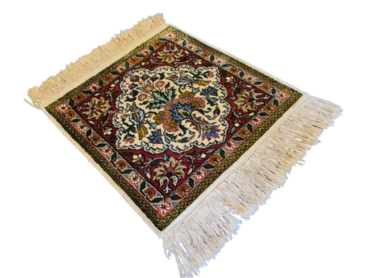 Hochwertiger Feiner Seidenteppich aus Kashmir Ghoum Handgeknüpft 40x37cm