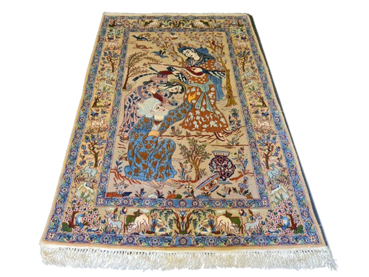 Wertvoller Handgeknüpfter Isfahan Seidenteppich Orientalische Kunst 108x71cm