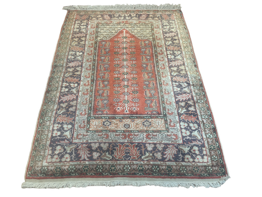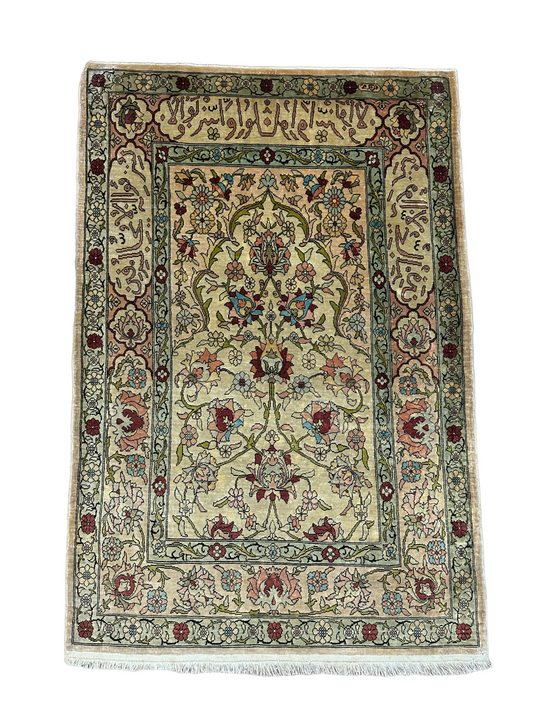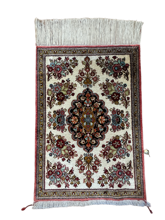 Handgeknüpfter Orientteppich Feiner Kayseri Gebetsteppich aus Seide 140x90cm