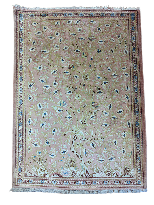 Handgeknüpfter Perser Orientteppich Ghom Lebensbaum Seidenteppich 160x105cm