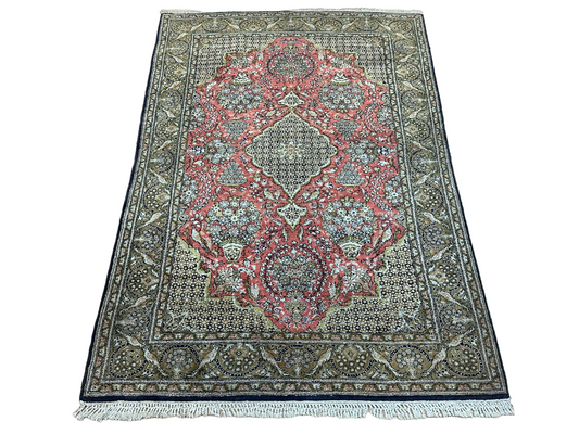 Handgeknüpfter Orientteppich - Kaschmir Ghom Seidenteppich -150x95 cm