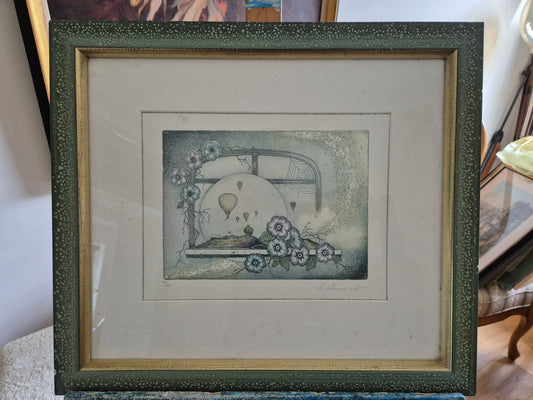 Willy Schneppenhorst (XX) Farbradierung Luftballons und Fensterblick