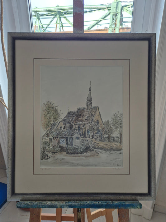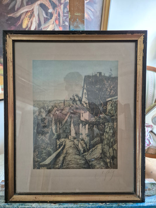 Handsignierte Farblithographie Altstadtweg Stadtansicht Gerahmt