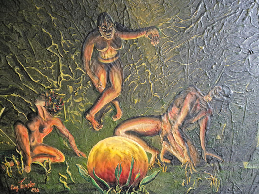 Mischtechnik Gemälde Stammeskunst Aug. Taubier (1986) Handsigniert