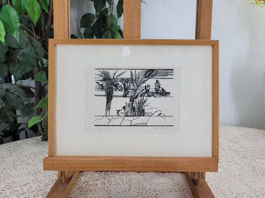 Original Holzschnitt, H.C. Künstlerabzug Handsigniert Oase in der Wüste