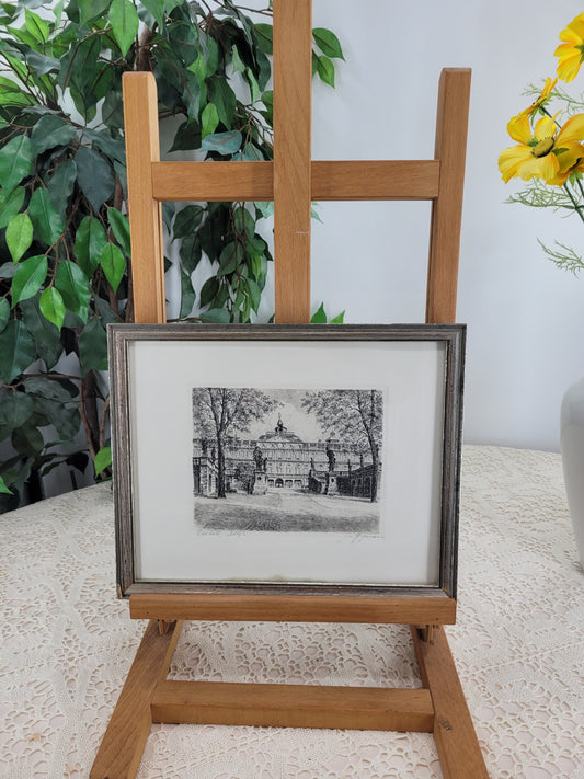 Original Antiker Kupferstich des Residenzschlosses Rastatt, Handsigniert