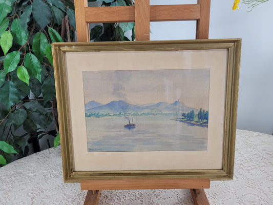 Thomas (XX) Aquarell Malerei,Landschaft mit See und Bergen