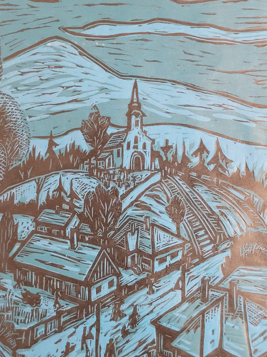 Original Holzschnitt, Post Impressionistische Landschaftsidylle